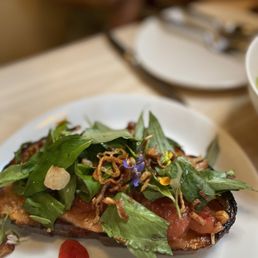 I was intrigued by their unique menu and was pleasantly surprised by how tasty the food was. I'm Vietnamese so am always willing to support any restaurant trying to showcase our food. This is a non traditional Vietnamese restaurant which they state, in order to manage your expectations. I interpreted their menu as their version of Vietnamese dishes using similar flavors of the same dish. They recommend to order 2-3 dishes per person and share family style. We were a party of 3 and ordered 6 dishes. We were content but definitely not full. The portions are very small - even their main dishes. My biggest complaint is they use fish roe in many dishes. You can't just add fish roe to any dish and then feel justified to upcharge it. Restaurant is very modern. They try to create an upscale but casual environment. Service was very good. What we ordered: Crudo - refreshing. I liked the flavor of coconut milk and ginger Soft scrambled eggs - description sounds odd but it somehow works. It was very savory. Eggs were super fluffy Shrimp cake - I didn't like the butter sauce it was in but the shrimp itself was good. The sauce was too rich. The Vietnamese translation is kind of off. I think they were going for "chao Tom" Colorado trout - their version of "cha ca". fish was cooked very well and tasted very close to the traditional dish Pork shoulder - meat was flavorful and tender. Basically their version of "thit nuong" Khaoi chien (Curry French fries) - fries were super crispy and loved the curry flavor. It was spicy!