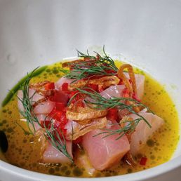 Our expectations were high heading into dinner at Sap Sua. Overall, our experience exceeded expectations. Although there was some room for improvement (around course selection and balanced flavor profiles), my wife and I had a very enjoyable meal and look forward to going back with a larger group to try more items. Ambiance: We dined at the bar on a Friday night. Upscale but not formal. Pretty much the decor and styling you would expect from a modern urban asian restaurant. The bar's collection of cookbooks & Kobe Bryant memorabilia was a fun touch. Not as loud as expected, but it may have been louder at the dining tables (as the bar had a lofted ceiling). Service: Our bartender was wonderful. Knowledgeable of the menu and offered helpful advice on pairing and portions. We appreciated her recommendations and feel that she set realistic expectations. Drinks: I was a bit turned off to the cocktails from reading reviews, so we passed. Sitting at the bar we saw plenty of beautiful libations though. I did have the "Heineken, served over ice," explained as common in Vietnam due to the heat. It was fine - not as weird as expected. It felt gimmicky but also fit the setting. Would order again (even though I'm not a huge fan of Heineken). Given the intensity of the meals (lime & salt), I'm glad I passed on a sour cocktail. Beer paired nicely though. Food: The seasonal menu was larger than expected, which was a pleasant surprise. We shared 5 items, trying to hit the well reviewed "signatures." We enjoyed them all. Pacing was solid, with some intentional overlap but most coming out individually. The menu was described as "light to rich" from top to bottom, and this is the order they were generally served, which seemed thoughtful and intentional. However, our significant qualm of the evening was being overwhelmed with acidity (lime) and salt in courses 2-3-4, while courses 1 & 5 brought the fatty richness needed to balance it all. I'm still not sure if I'd order differently or just request a different item order to better balance the meal? The recurring theme that impressed us across dishes was the use of fresh herbs and spices (specifically basil, cilantro, and Serrano). I'm surprised this isn't highlighted more in other reviews, as it really stood out to us. We shared (in order): Trung Va Trung (Soft Scrambled Egg over Rice) - 3/5. But would order again to balance the meal. Good not great. Expected more of a fried rice, but it was pretty much a scrambled egg on white rice. You could taste the quality, but the flavor was egg. Roe added a nice texture. This came out first. I think we would have enjoyed this more if served to complement the bright, acidic middle courses. We saved a few bites, and it was remarkable how rich and mouth coating (in a good way) it tasted later in the meal. Hamachi Crudo - 5/5. Must order. Definitely Sap Sua's signature dish. The citrusy lime broth is beautifully balanced with coconut and spice. Ceviche vibes (although technically raw?). We easily ate it all, but the flavor was strong enough that I think it could go 4 ways. I drank the remaining broth and was sad when it was gone. Bang Xeo (Little Gem Salad) - 5/5. We agreed this was the standout. The most well balanced of salt (fish sauce) fat (avocado) acid (lime) heat (Serrano). Huge pieces of basil and cilantro were stars (not just garnish). Fish sauce vinaigrette was beautiful. A fried & puffy turmeric shell (tortilla?) covered the salad like a giant crouton, adding great flavor and texture. Our server promised the butter lettuce salad was wonderful as well. Beef Larb Tostado - 3/5. The structure was nice and it ate very well (not soggy). From bottom up: fried turmeric shell (similar to salad crouton), spread of avocado, ground beef, herb salad. The real challenge with this dish was the amount of salt and lime in the avocado layer. After the hamachi crudo and gem salad, our mouths were lit up. This took it over the top. It's also here that I revisited the scrambled egg rice and felt how rich it was. I'd consider getting this again with a large group (4-6 people), but it was too intense for 2. Thit Heo Nuong Sa (Grilled Pork Shoulder) - 4/5. Felt like a signature dish. Pretty much as expected, which is good but not overly creative. Well caramelized. Fresh herbs really stared again - basil, perilla (similar to basil?), cilantro, cucumber. Overly fatty cut of meat - we left a significant amount behind due to fat. Probably worth trying your 1st visit but don't need to get again. Value: Food prices felt appropriate given quality, creativity, and portion sizes. Although we didn't order cocktails (can't speak directly to quality), the $15 price tag felt a bit misaligned compared to the food prices and overall experience. Of note is that our bill had no added fees (service, living wage, kitchen, gratuity, etc.). While I don't mind those fees and understand the need, it was refreshing to see such a simple bill.